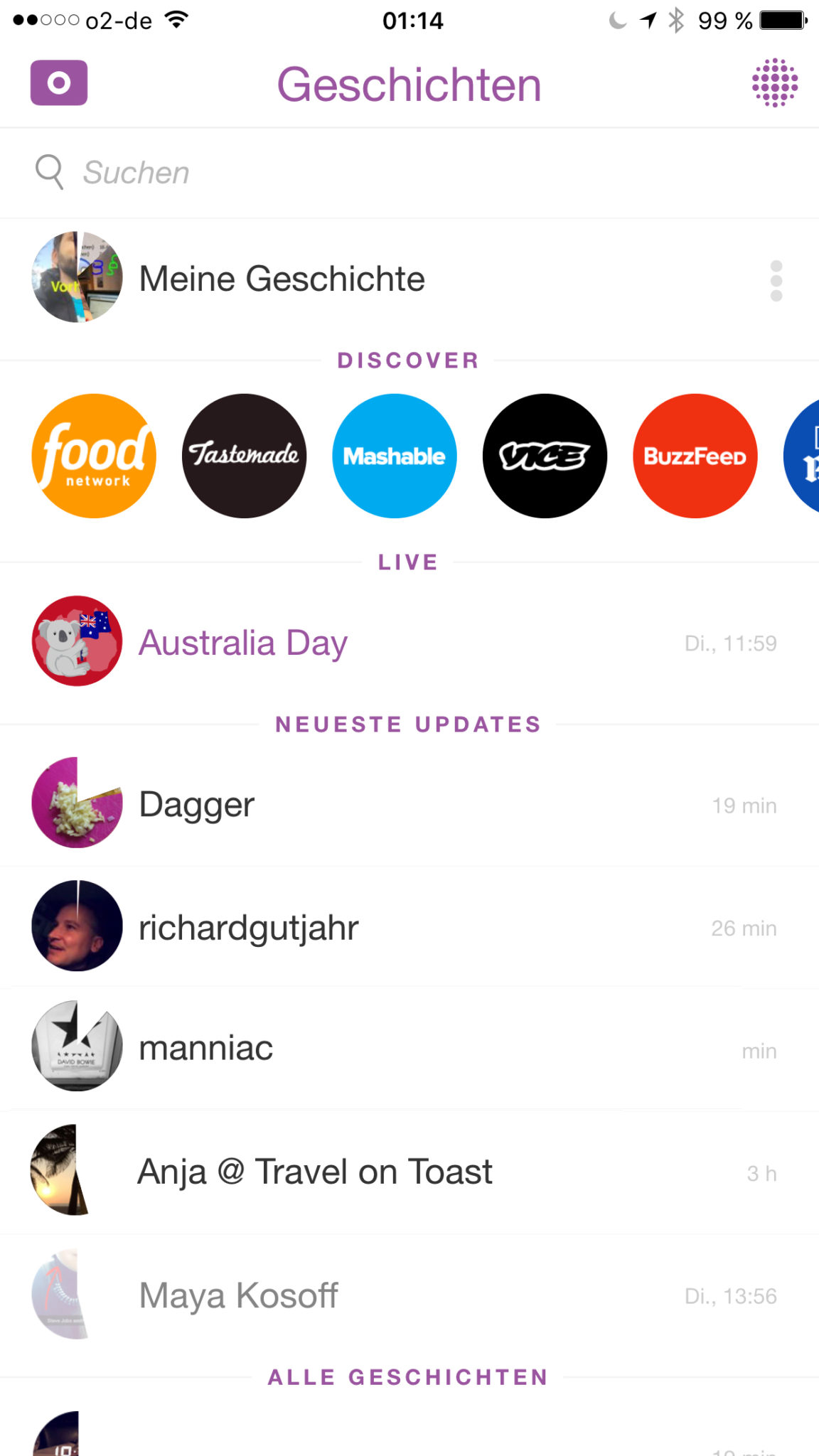 Anders als z.B. bei Instagram, können Aufnahmen nicht bearbeitet und in die App geladen werden (zumindest nicht für öffentliche Geschichten). D.h. die Aufnahmen sind direkter, ungekünstelter und „Mitten aus dem Leben„. Das führt nach meiner Beobachtung auch dazu, dass auf vielen der Aufnahmen Menschen zu erkennen sind.